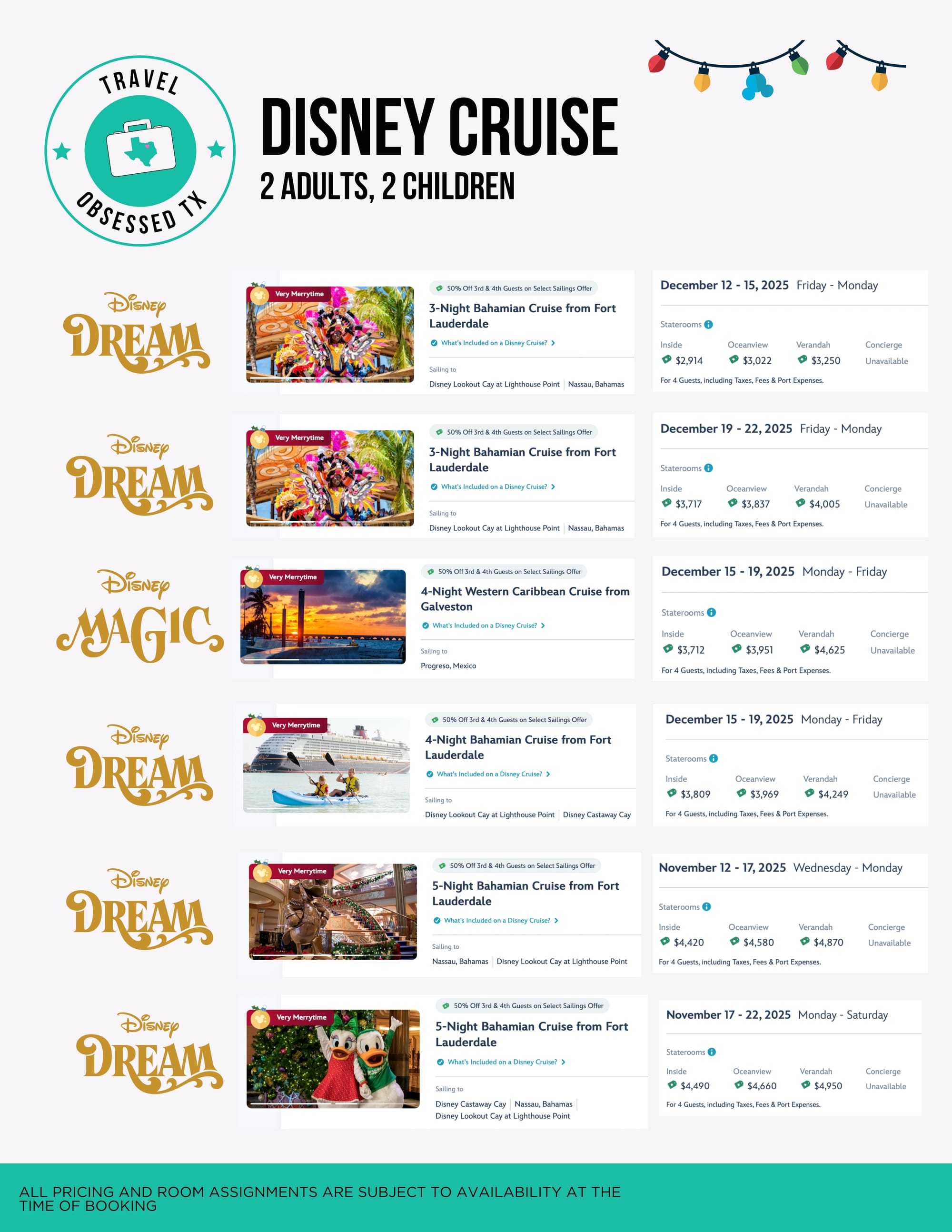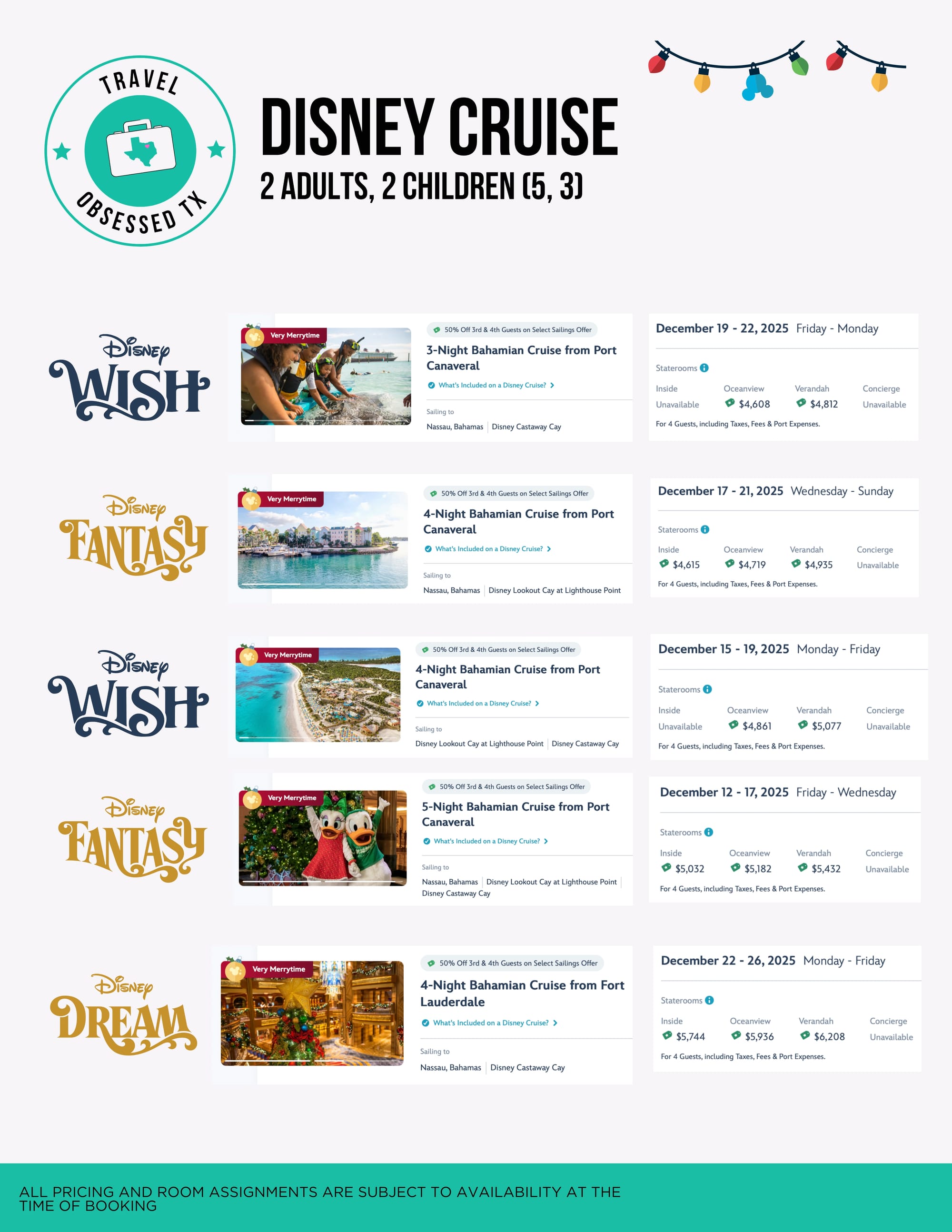 And yes, these are ALL Very Merrytime cruises, where the ships are decked out for the holidays. If you’ve ever dreamed of a Christmas tree in the atrium, characters in festive outfits, and a sprinkle of Disney magic at sea? THIS IS IT. 🎄